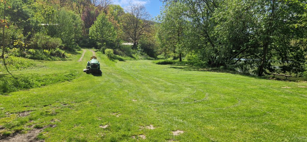 Holz für das Backhaus, Werkzeuge für die Gartenarbeit und ein Teil des Maschinenparkes konnten in die Scheune gebracht werden. Ein bisschen Ordnung kehrt ein. Streuobstwiese, Barfußpfad, angelegter Garten, Stellplätze für Wohnwagen und Bauwagen sind gesichert und für den unmittelbaren Bereich unseres Trinkwasserbrunnens sind wir nun selbst verantwortlich, damit keine Gefahrstoffe eingetragen werden.